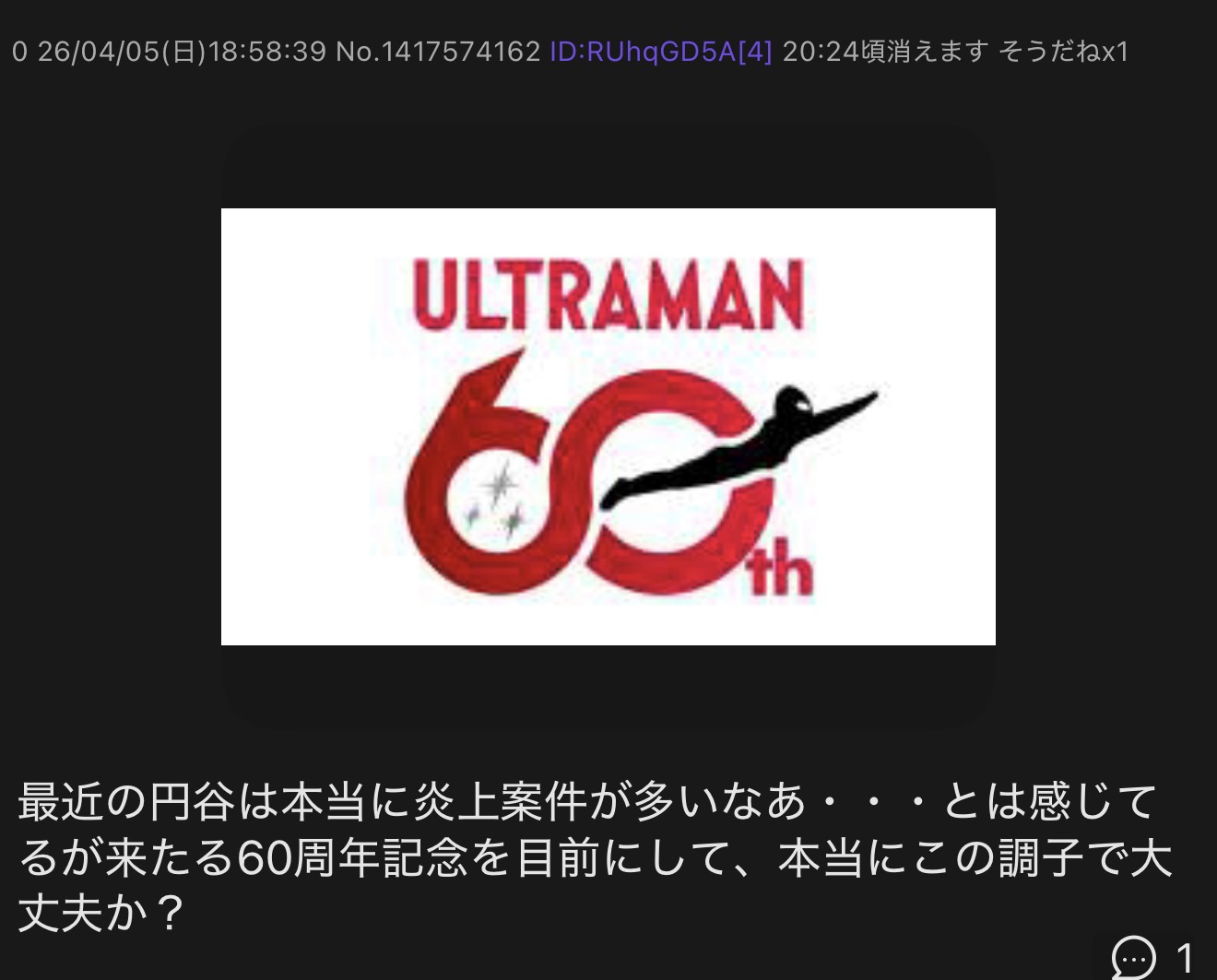 | … | 7526/04/05(日)19:31:41No.1417587527そうだねx1自称古参ウルトラファンなのに…? |
