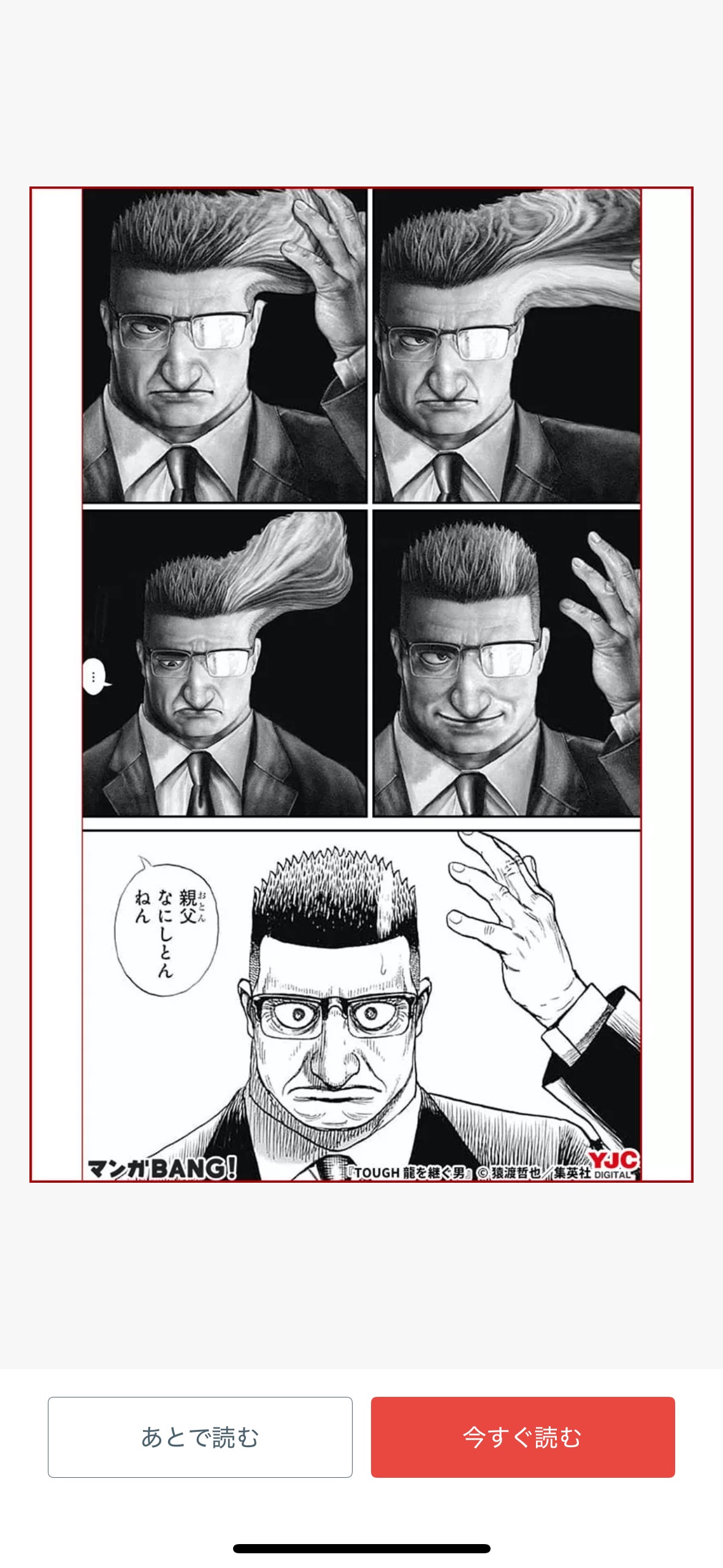 | … | 16326/04/05(日)22:02:56No.1417657601+今のタフ2は格闘漫画としてめちゃくちゃ面白いけど猿漫画としての面白さならやっぱ龍継なんだよね |
