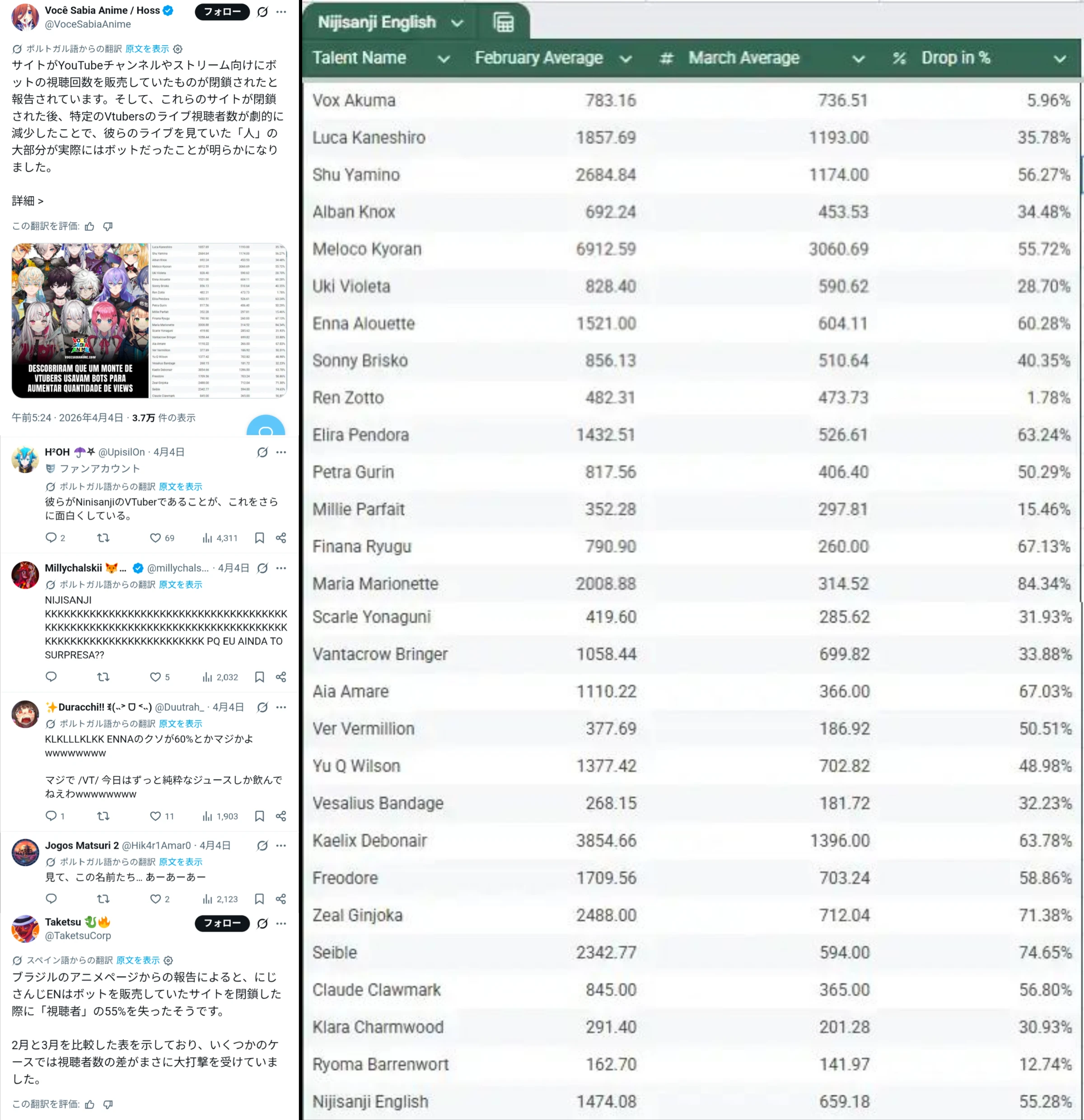 | … | 1726/04/06(月)09:54:03 ID:TIJuKT26No.1417762175そうだねx8>逆にこの状況でほぼクリーンなVox AkumaとRen Zottoってのは何なんだ |