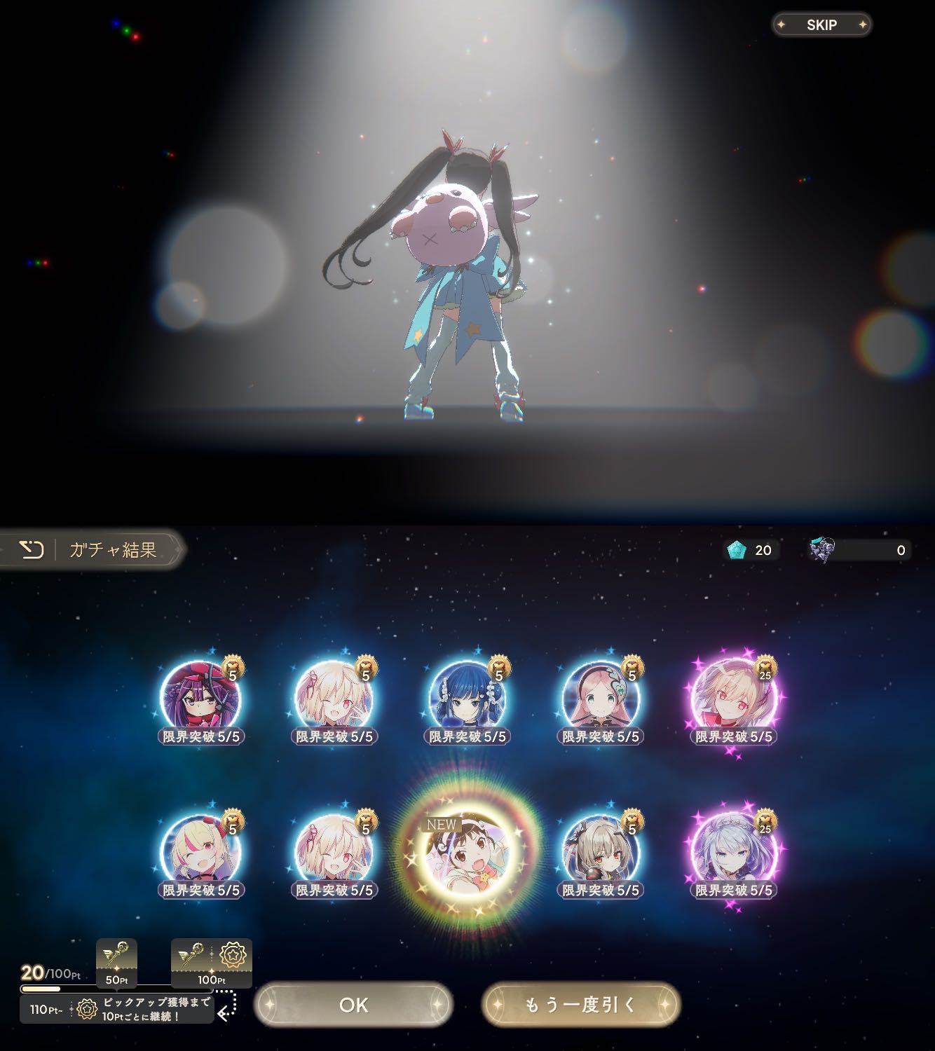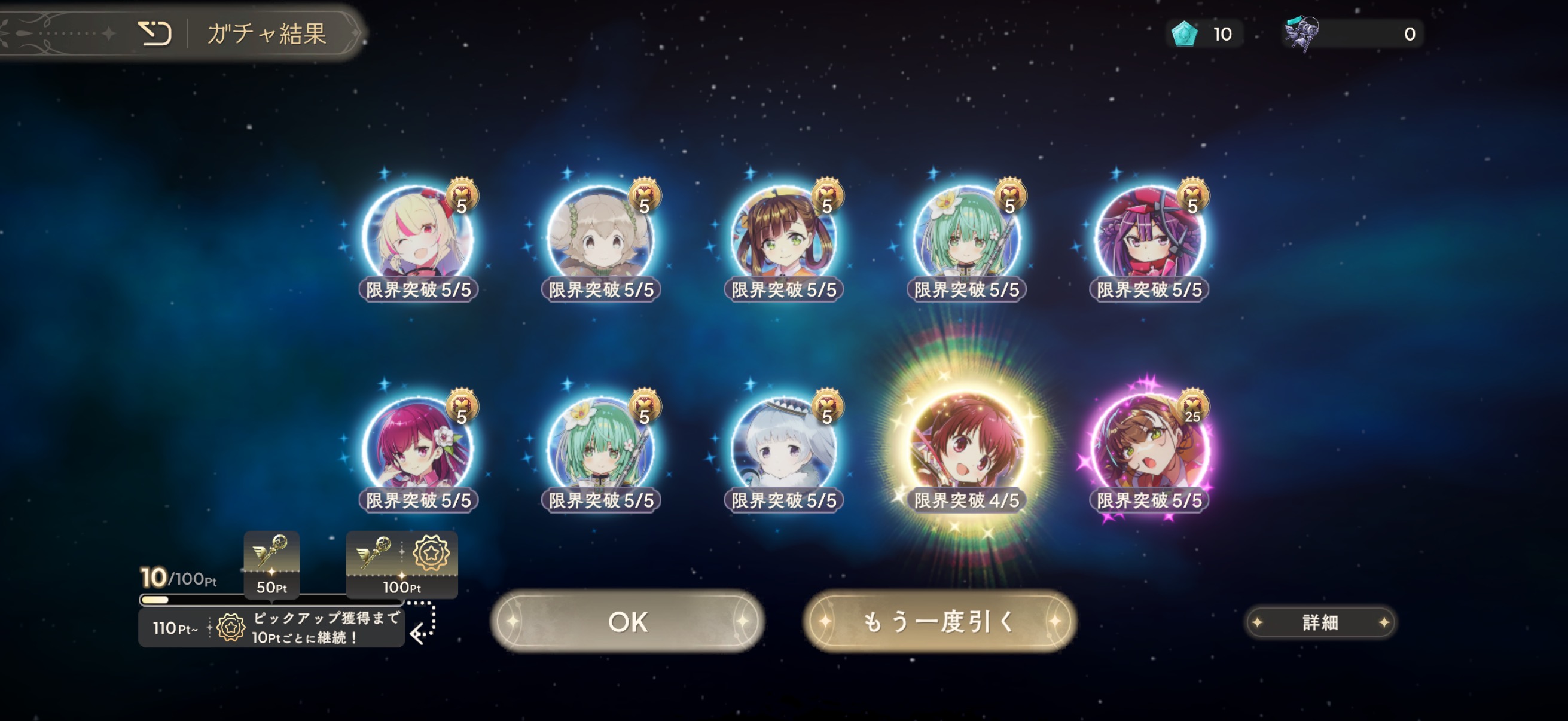 | … | 33926/04/06(月)13:58:33No.1417808469+鍵はいつものやつだったけどもらった石で10連したらふうかちゃん出たので許したるの〜 |