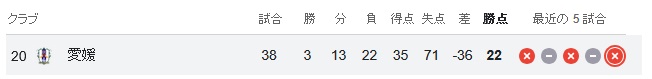 | … | 4726/04/06(月)19:33:59No.1417886658+愛媛のJリーグチームでググったら万年J3でたまにJ2昇格する程度でダメだった |