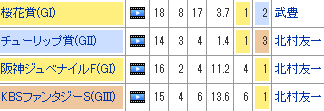 牝馬クラシック第1戦・桜花賞。阪神芝1600mという能力を出し切りやすい舞台で行われる日本の主流条件であるため、クラシックレースらしくサンデーサイレンス系やKingmambo系といった日本の主流系統が中心となっています。特にサンデーサイレンス系ではパワーとスピードに優れたダイワメジャーの血と相性が良く、昨年もダイワメジャー内包馬のワンツー決着。また、Kingmamboの血も過去10年で6頭の優勝馬が内包していました。ちなみに、過去10年の勝ち馬全10頭は馬体重460キロ以上の比較的大柄な馬でもあります。