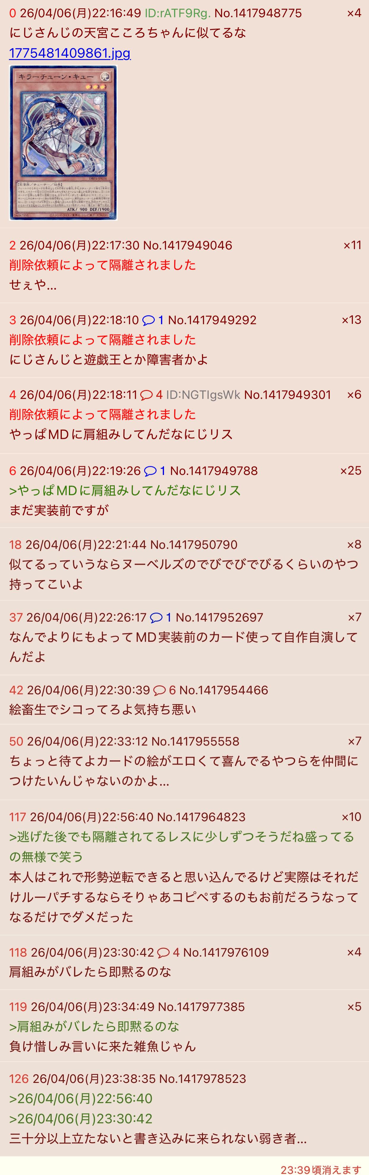 | … | 6126/04/07(火)00:21:33No.1417991510+>もう普通に荒らしなの開き直ってるな |
