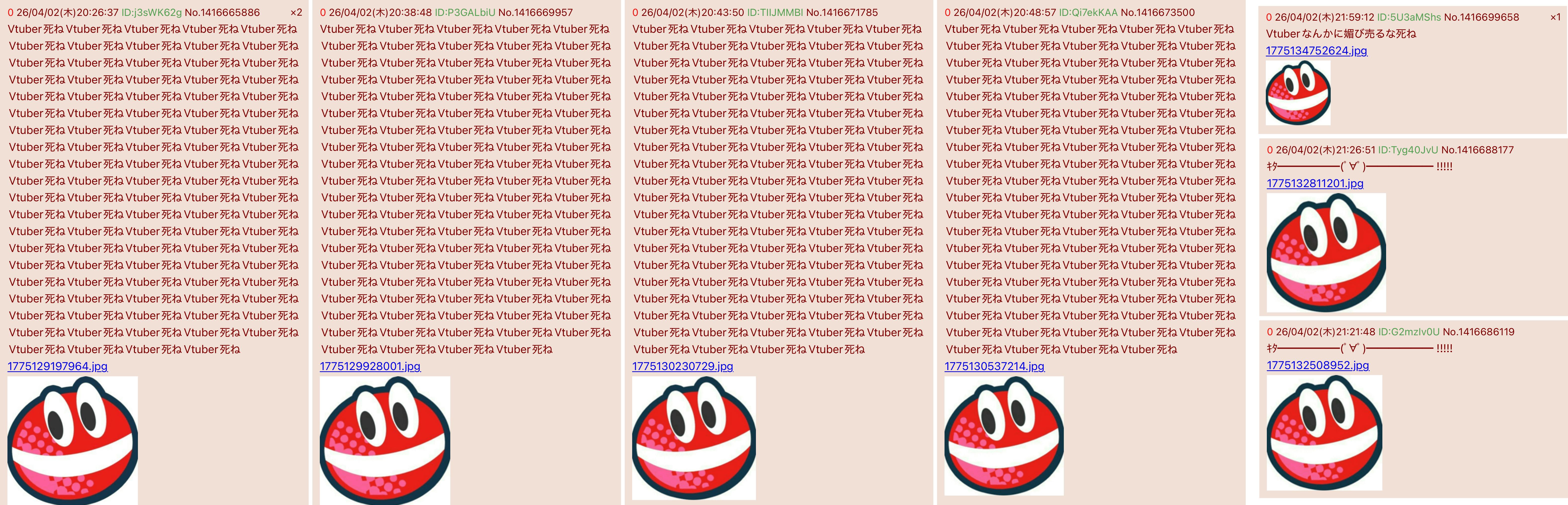 | … | 6526/04/07(火)00:21:44No.1417991563+>もう普通に荒らしなの開き直ってるな |