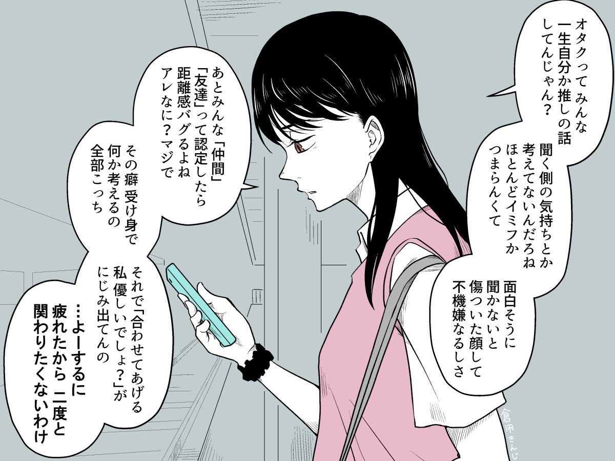 | … | 226/04/07(火)02:09:06No.1418010471そうだねx41「オタクは自分語りばかりしてるから嫌われてる」っていう自意識つえーなって毎回思う |