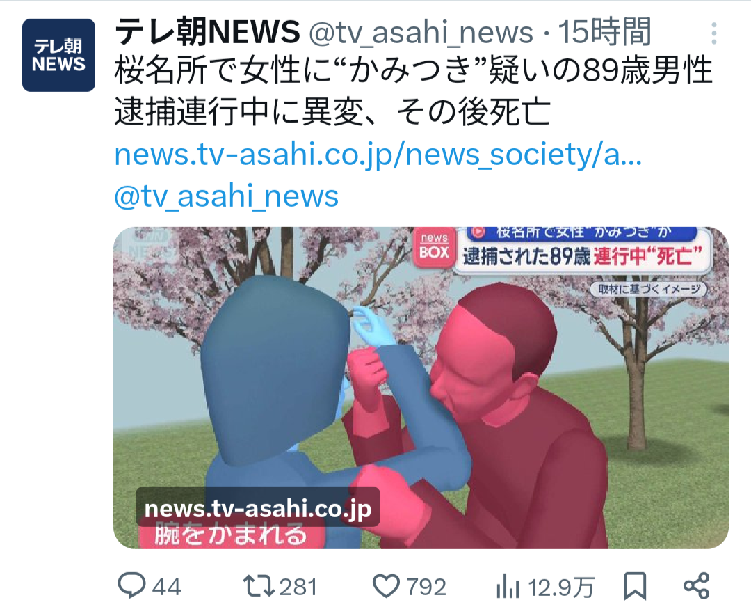 | … | 10626/04/07(火)12:54:41No.1418079777+89歳なら興奮しすぎで死亡などもありえるけど病気系との差は解剖ですぐ分かるだろうし騒げるのも今のうちだな |