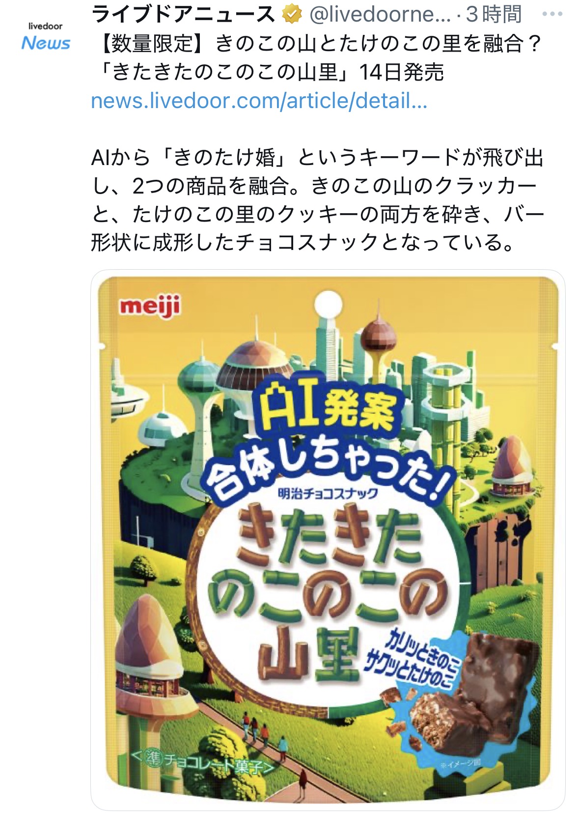 | … | 6926/04/07(火)13:34:34No.1418087479+きのことたけのこの融合体が単なる長方形なのグロい… |