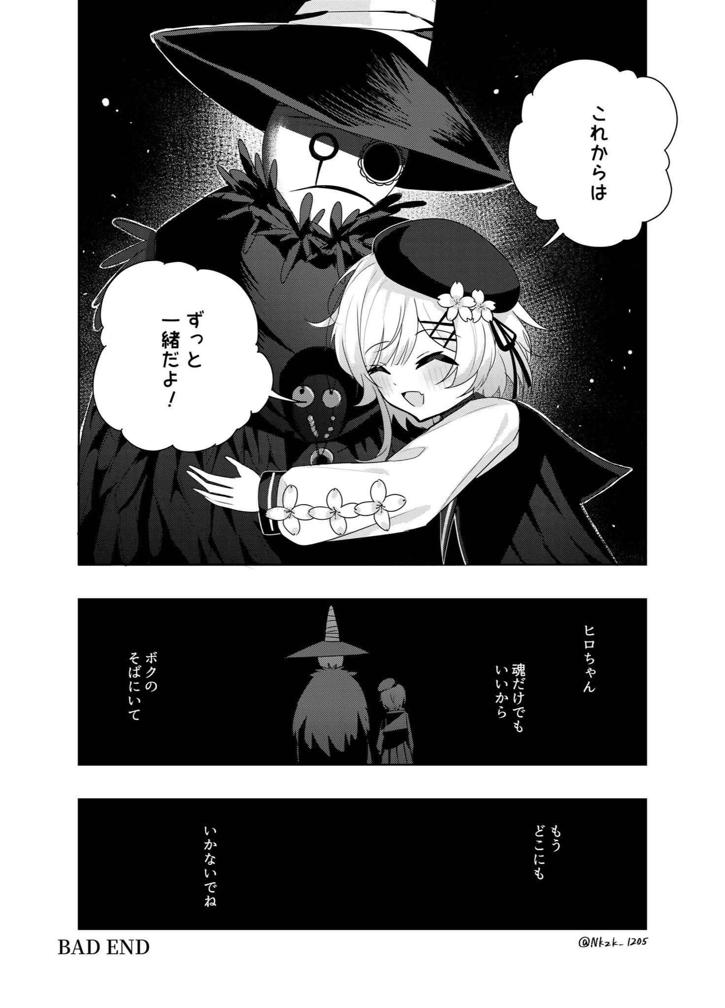 | … | 15126/04/07(火)17:47:13No.1418136140+中学の制服を着て楽しそうにはしゃいでいる私とエマの姿を見て汗のようなソレを流しながら引き返すヒロ…… |