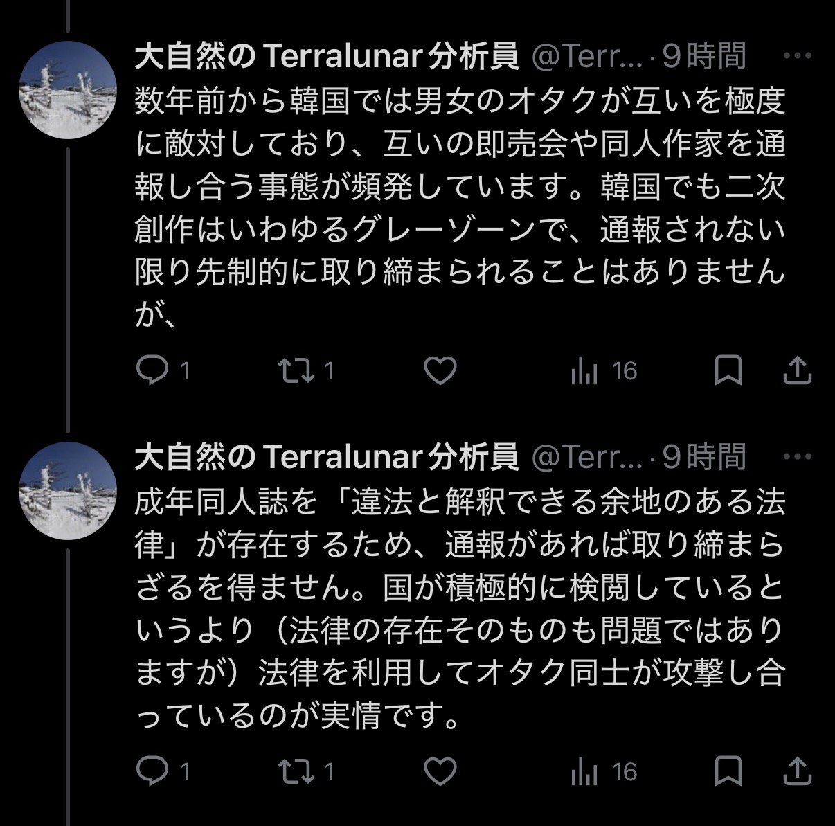 | … | 2026/04/07(火)17:44:09No.1418135493+中国は腐女子が逮捕されたんだっけか |