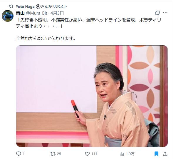 | … | 726/04/07(火)20:09:44No.1418180653そうだねx4東証株価指数(TOPIX)は反発したァ〜ン❤️ |