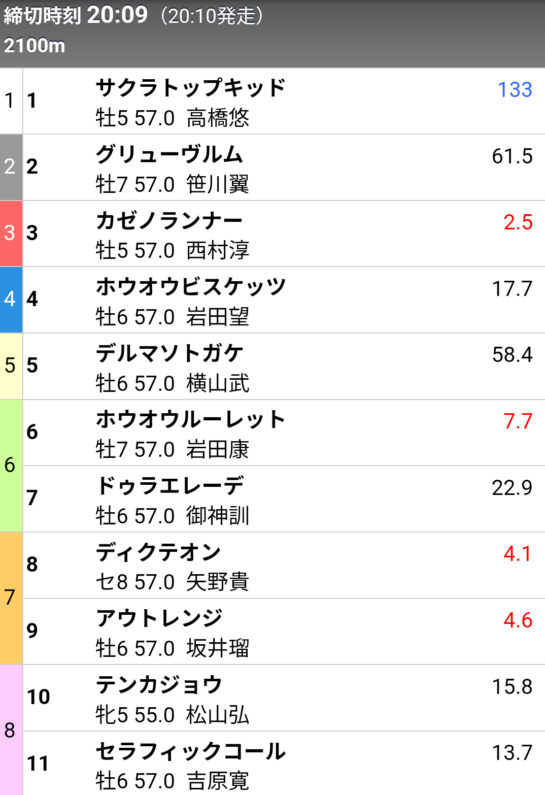 | … | 1526/04/07(火)21:28:37No.1418210880+南関の前日投票とか参考になりませんけどカゼノランナー1番人気ですか… |