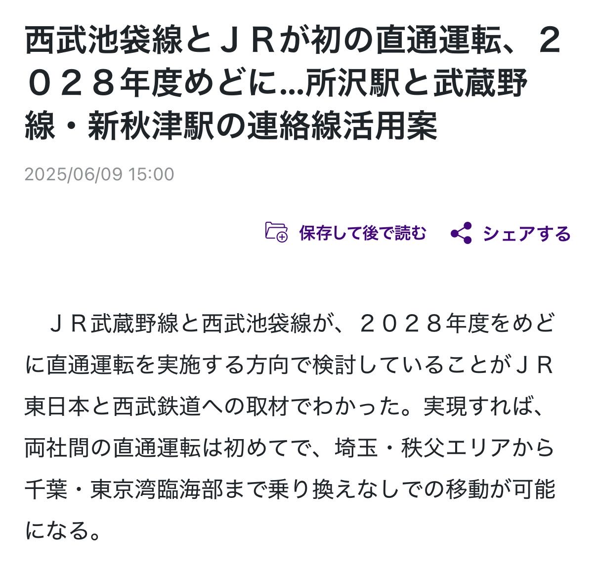 | … | 2126/04/07(火)23:15:06No.1418248315+西武池袋線と武蔵野線の直通はどんなもんなのかな |