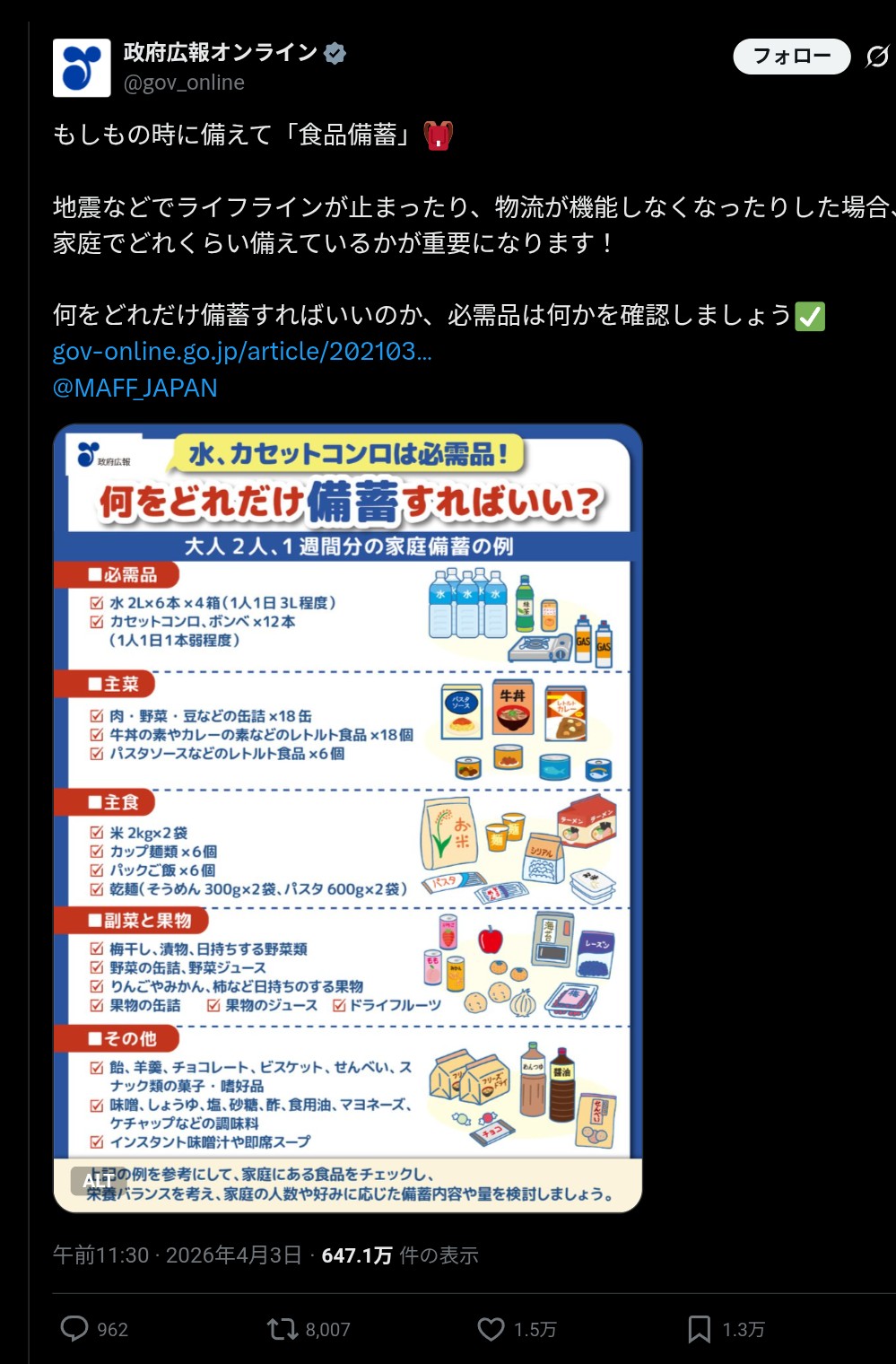 | … | 3626/04/07(火)23:51:24No.1418259285+>備蓄しようね! |