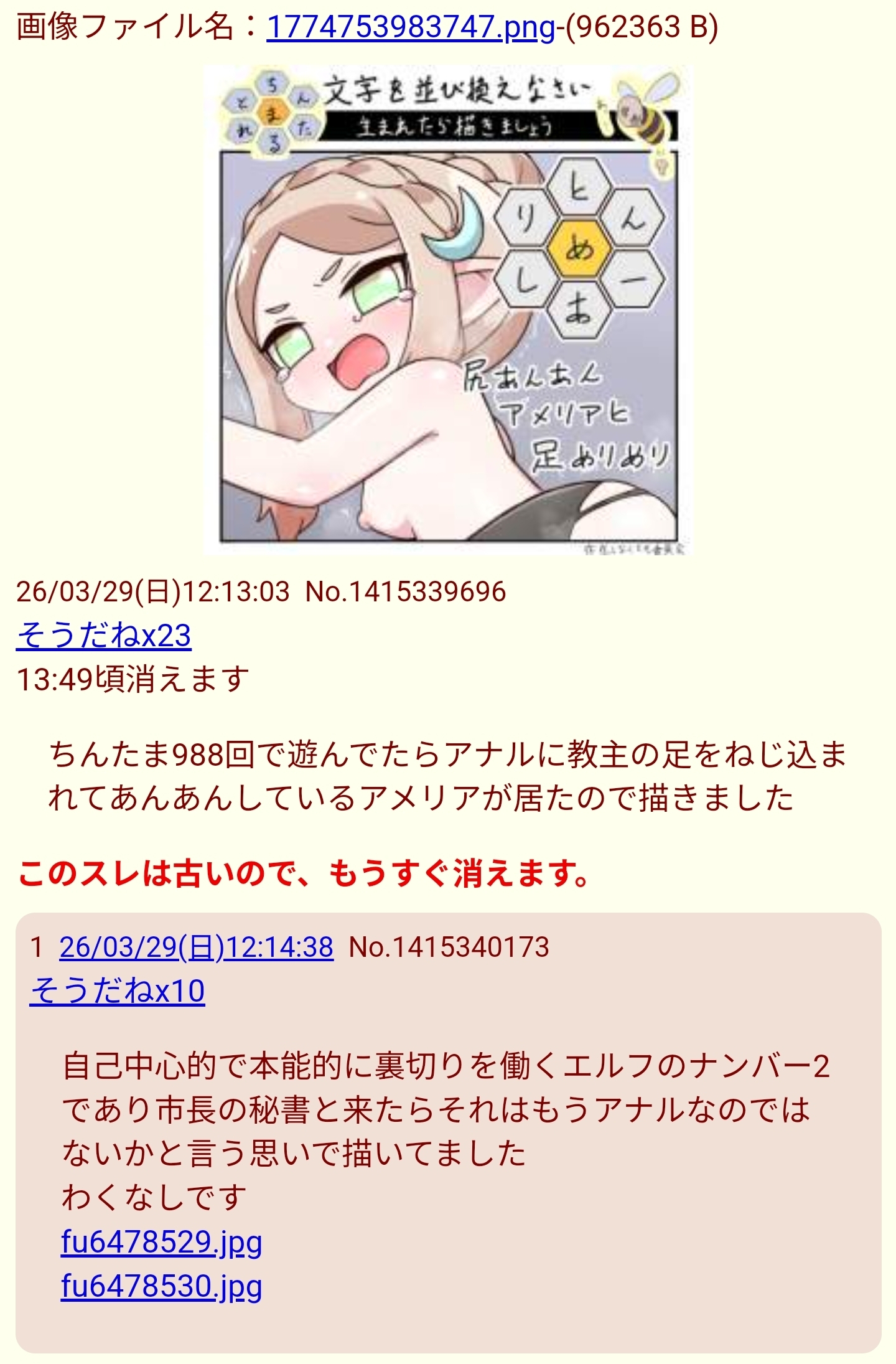 | … | 19026/04/08(水)03:39:38 ID:ErYoIXpMNo.1418293380+fu6520683.jpeg |