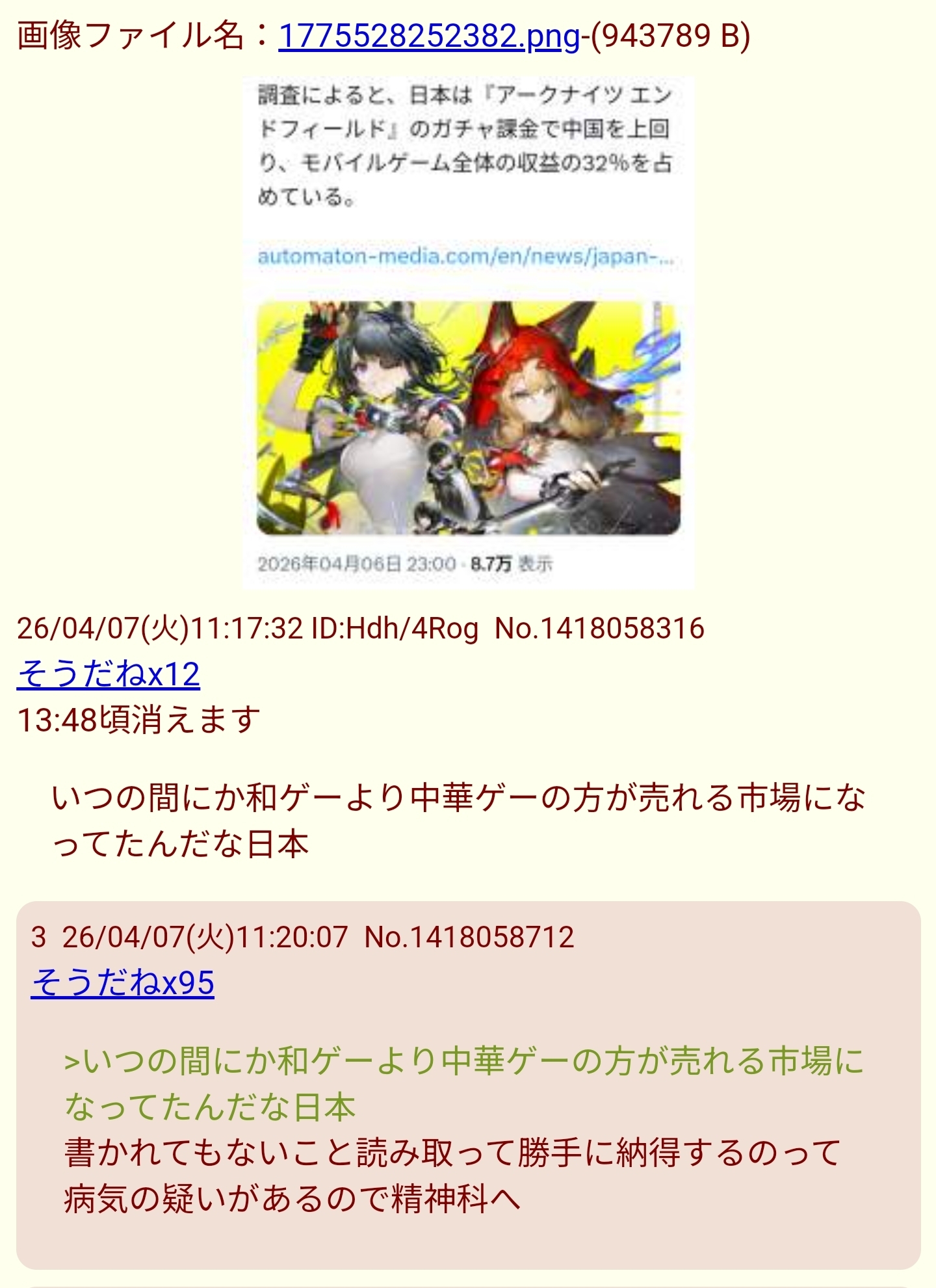 | … | 18026/04/08(水)03:37:10 ID:ErYoIXpMNo.1418293264+fu6520789.jpg |
