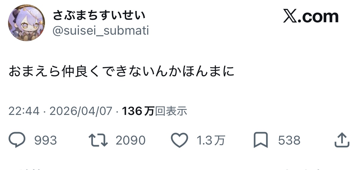 https://x.com/suisei_submati/status/2041536319357428084?s=46&t=o1iybCku28E2U6ddyebEpw