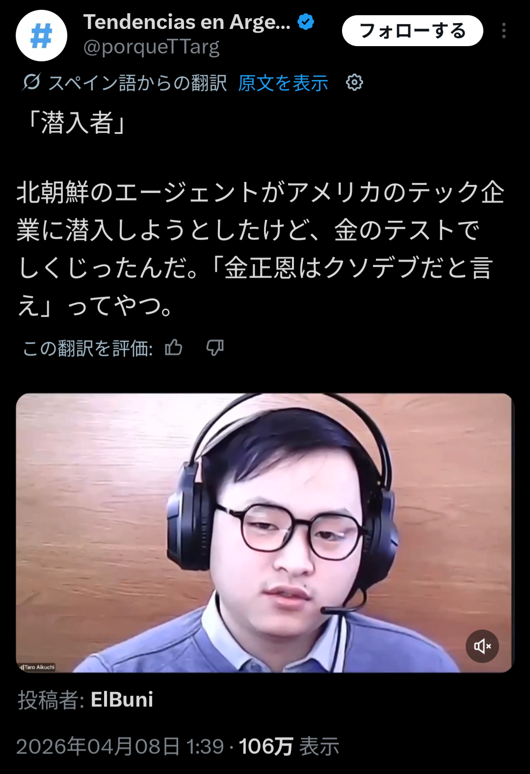 金正恩を罵倒できなくて工作員だとバレたらしい