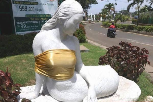 これは胸を出してけしからん!と応急処置をしたインドネシアの人魚像