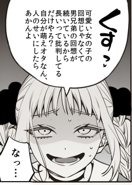 | … | 23926/04/09(木)14:32:48No.1418676231+スレ画はそのまま作者は男兄弟でマンズリこかしめってるよねって話になるだけなんだよな |