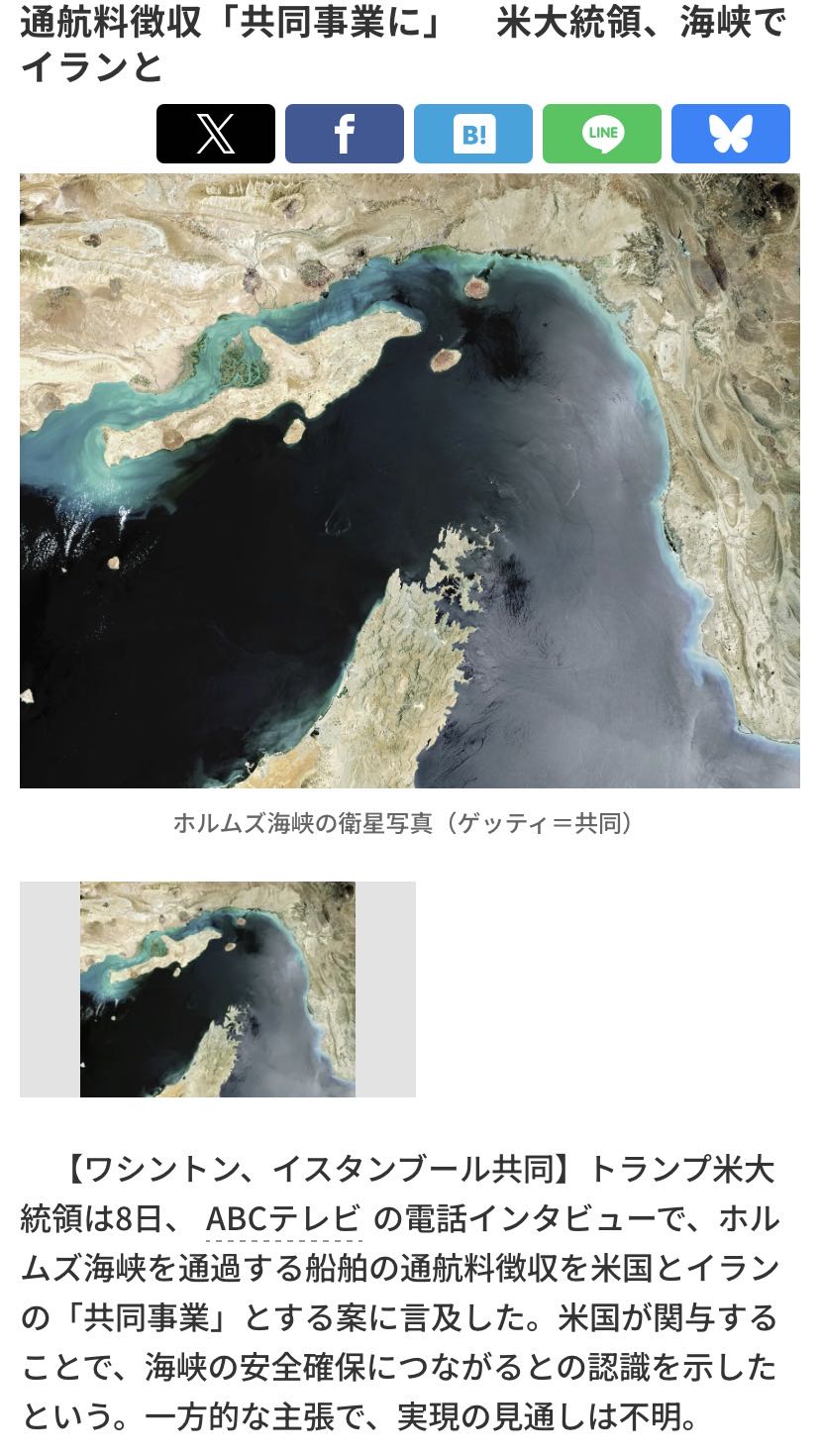 | … | 7426/04/09(木)15:49:37No.1418691282そうだねx4アメリカとイランの共同管理で通行料取ることも視野に |