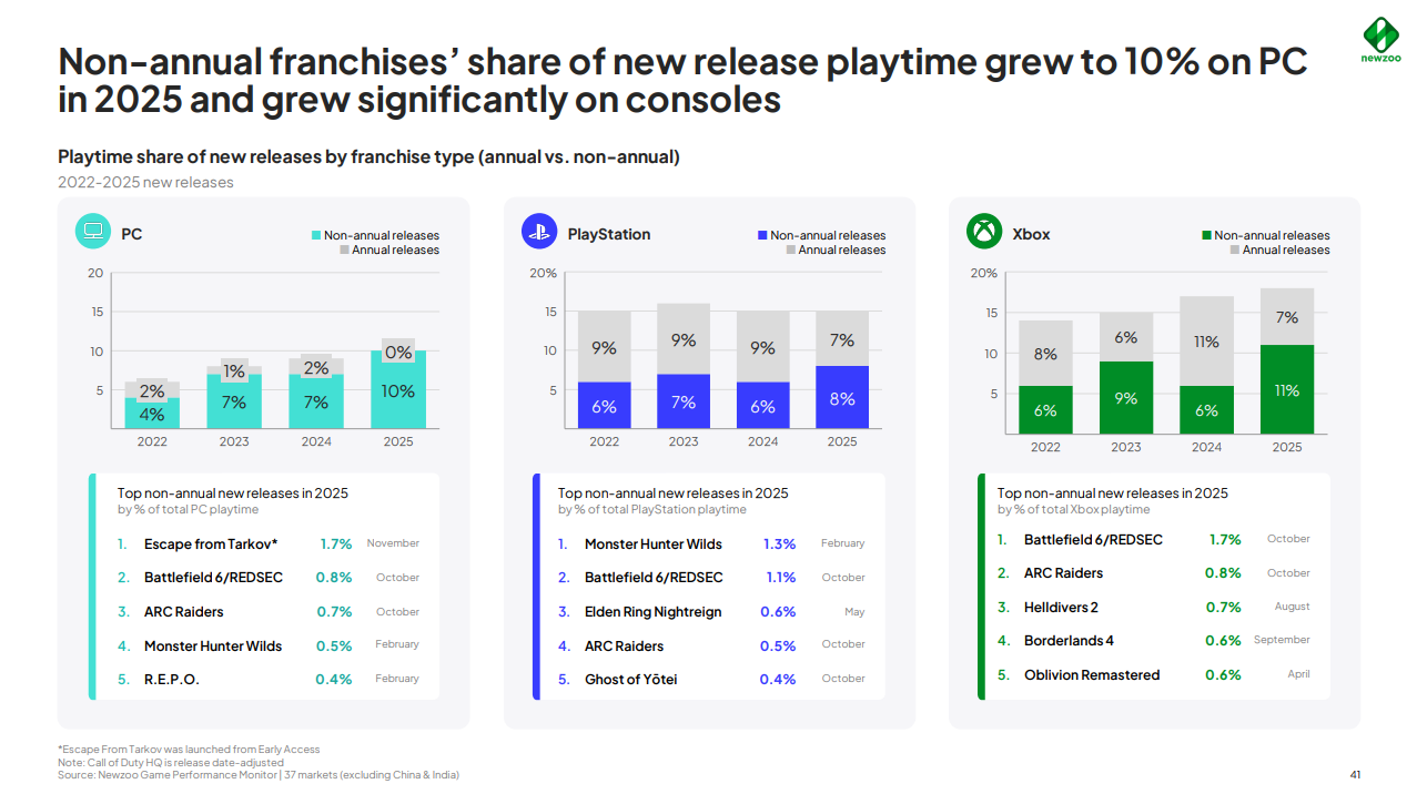 | … | 4926/04/09(木)16:52:01No.1418702820+>タルコフの後追いで死にまくった苦しみが喉元過ぎたのと最近これと言った流行りの新ジャンルが生まれてないからPvPvEに再チャレンジしてる雰囲気を感じるんよ |