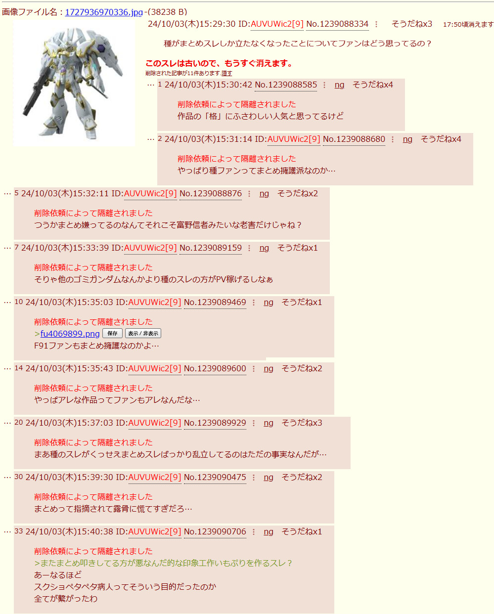 | … | 2426/04/09(木)19:04:14No.1418736505+スレッドを立てた人によって削除されました |