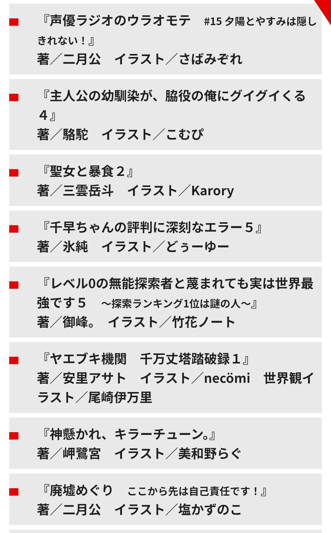 | … | 626/04/09(木)21:07:58No.1418778850+明日電撃文庫新刊出るけど何買う? |