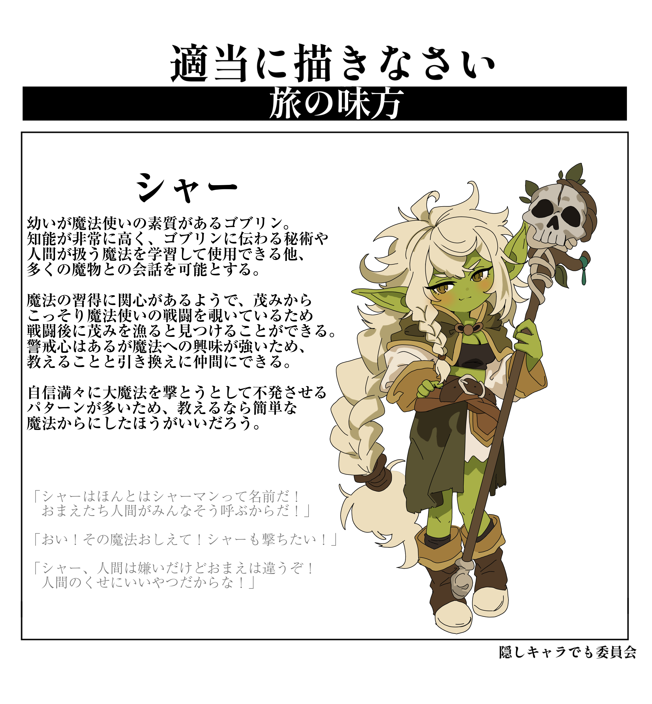 | … | 2726/04/09(木)22:33:28No.1418810860+ゴブリンシャーマンなんだから骨の飾りは無いとな |