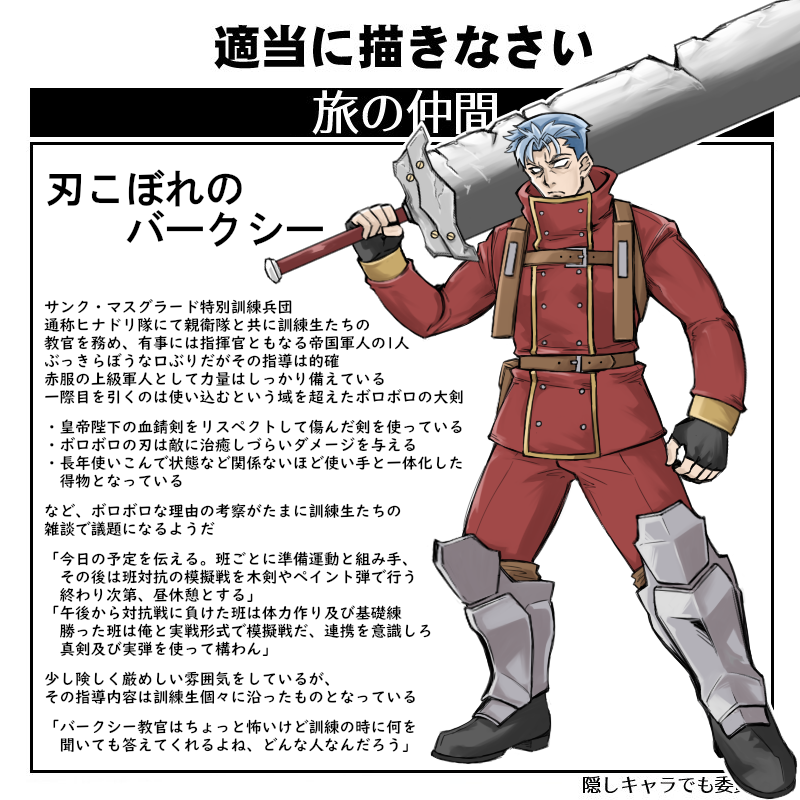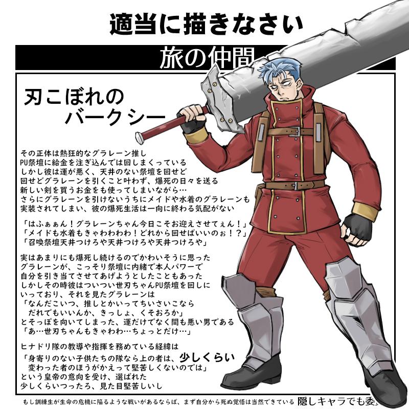 | … | 6926/04/09(木)23:50:47No.1418834890そうだねx1>バークシーの剣擬人化はボロボロコスチュームで露出度高めにできるかもしれんですね |