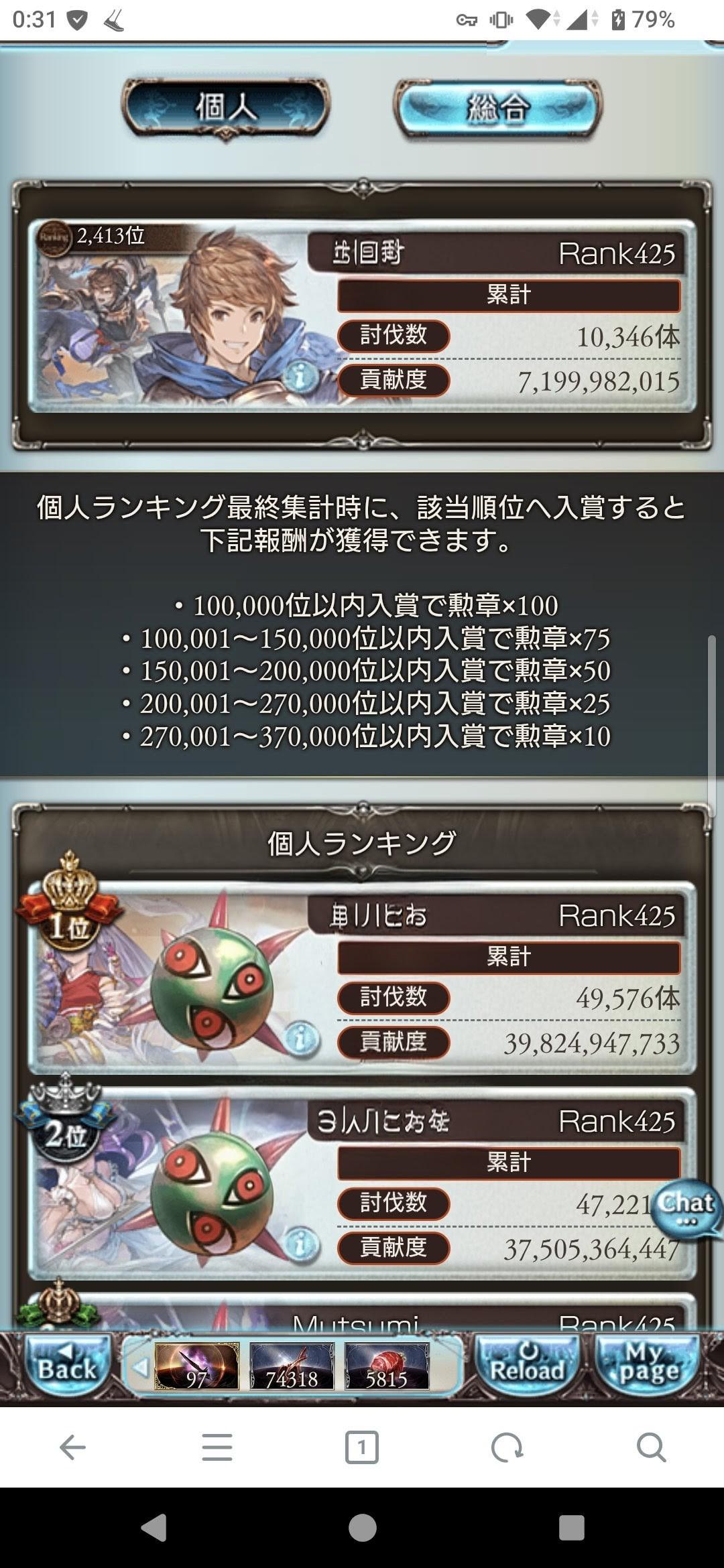 | … | 22926/04/10(金)00:39:08No.1418848123+>fu6528778.jpg >英雄ラインと9億差であぶぶぶぶですわ >でも予選時点では50%だったのが90%まで追いついてるからまだ食らいつきますわよ 参考とメモついでの稼働時間ですが起きて寝ながらやってたら10分くらい二度寝したのとお風呂で10分寝落ちした以外はずっと手動ですわ それ以上が2400人いるこのゲーム怖いですわ |