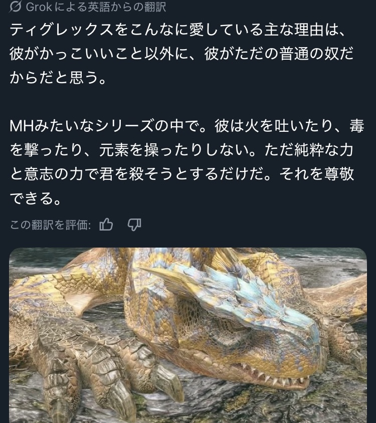 | … | 22326/04/10(金)01:05:21No.1418853421+スレ画の人ってメルゼナとかネルギガンテは好きなんだろうか? |