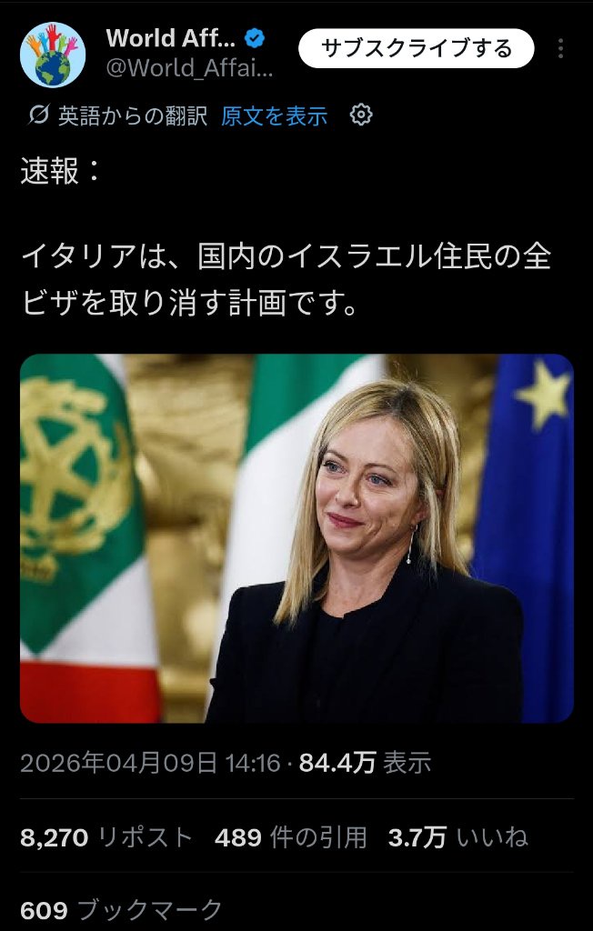 | … | 4726/04/10(金)01:18:59No.1418856128+スレ画はいまのところ裏付けがないし他の国からいくらでも入れるEU圏でイタリアだけの独断でビザ取り消しはそうそうないのでデマの可能性が高いよ |