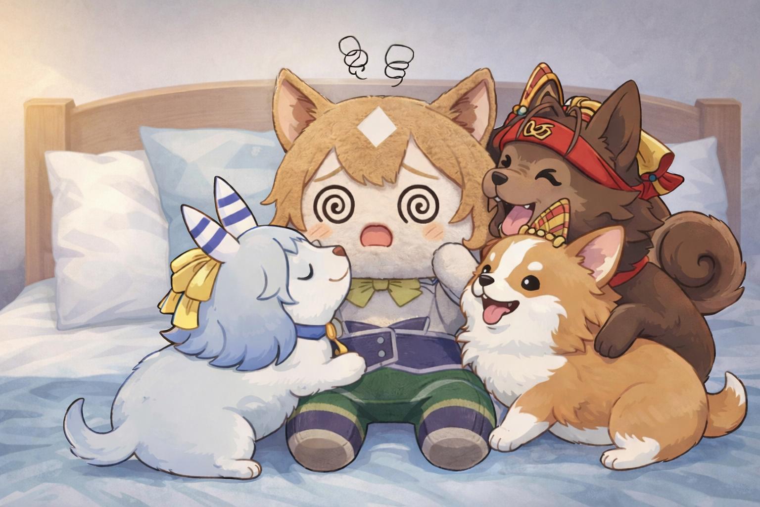 | … | 4626/04/10(金)08:29:26No.1418887355+>1775775416575.png よく考えたら犬がカッパを着てる絵って初めて見たかもしれない… |