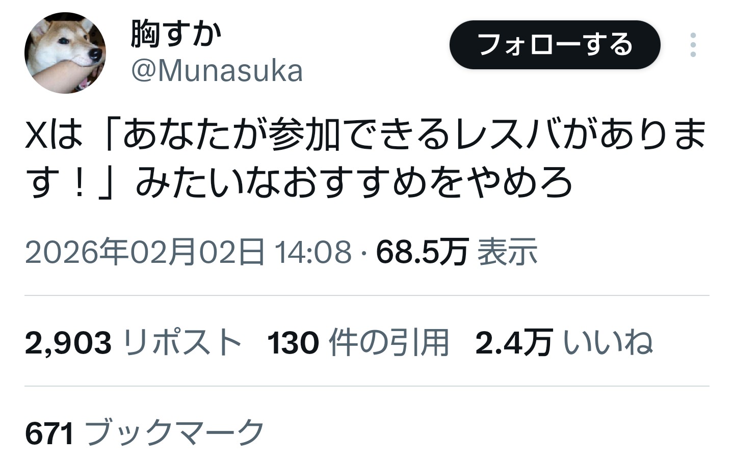 俺のおすすめは犬猫しか流れてこないし自業自得じゃないの
