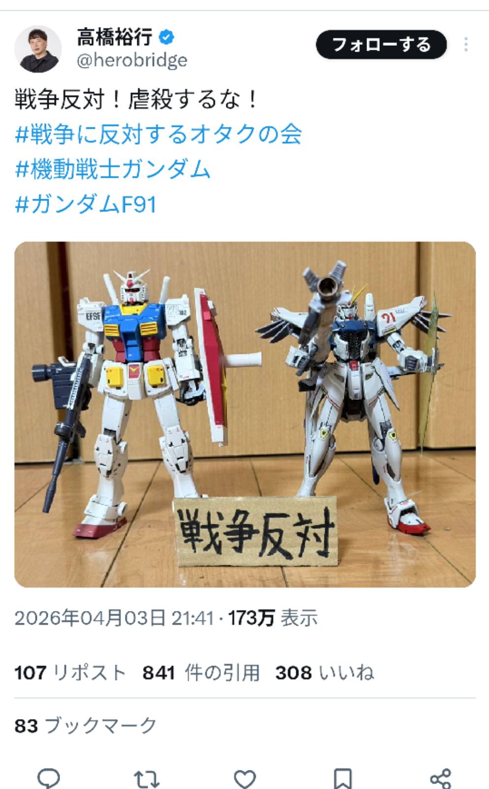 | … | 84826/04/10(金)18:43:03No.1419013073+パヨク「く〜見た事ないけどこのF91ってガンダム最高!反戦の為に政治利用しちゃおっと」 |
