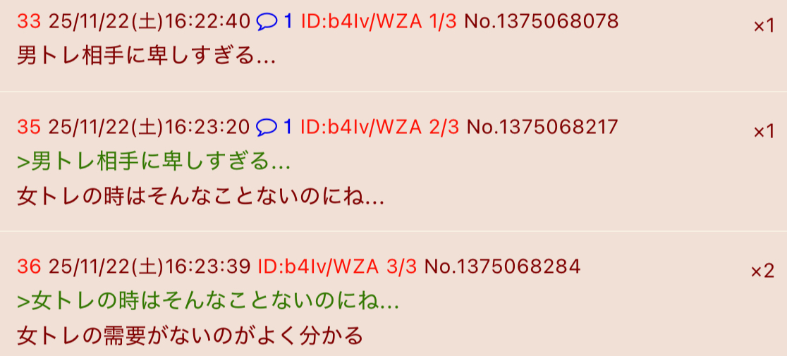 | … | 1026/04/11(土)10:54:01 ID:O7gUTBPENo.1419222122+>昼はボケやってますけど夜はツッコミやらせてもろてます |