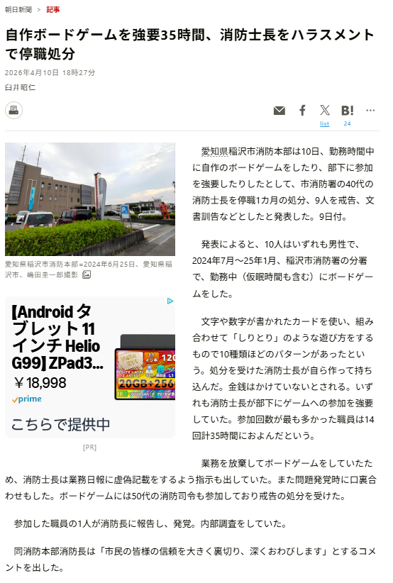 | … | 726/04/11(土)15:14:17No.1419289464そうだねx7>参加した職員の1人が消防長に報告し、発覚。内部調査をしていた。 |