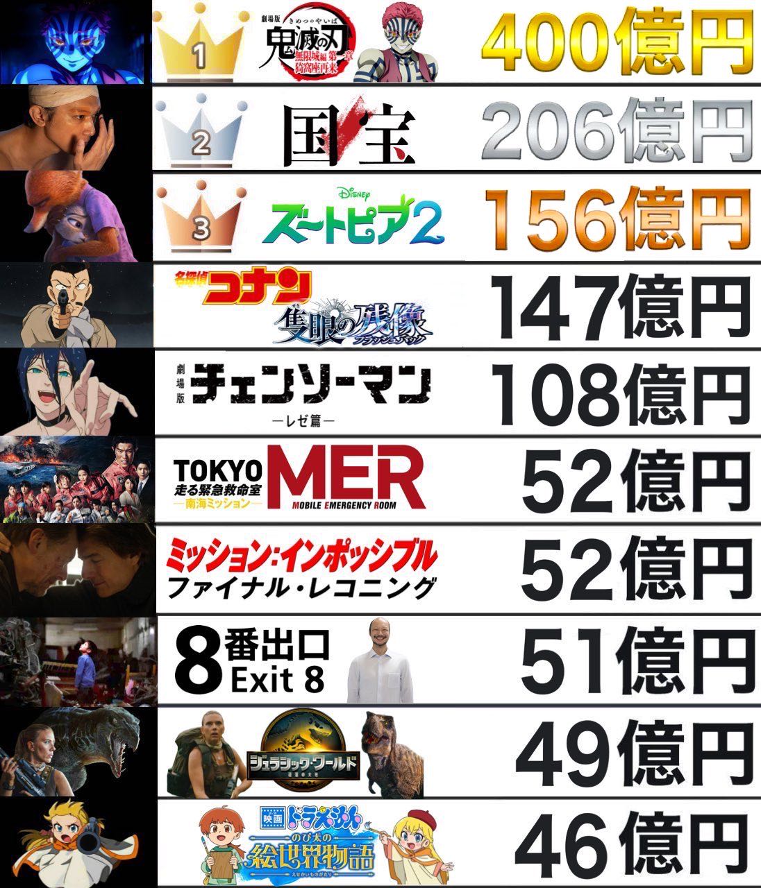 | … | 1226/04/11(土)15:52:48No.1419300115+あれ鬼滅無限城も400億いってなかった? |