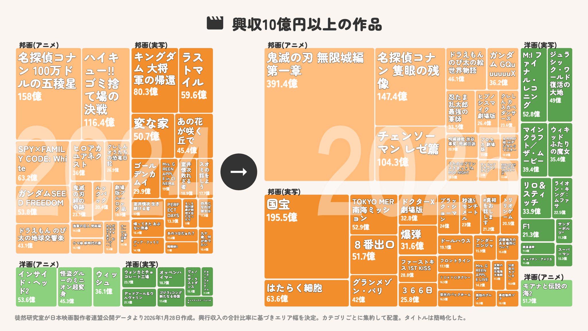| … | 8226/04/11(土)16:11:21No.1419305011+昔のドラえもん20億ぐらいだったの考えると躍進が凄い |