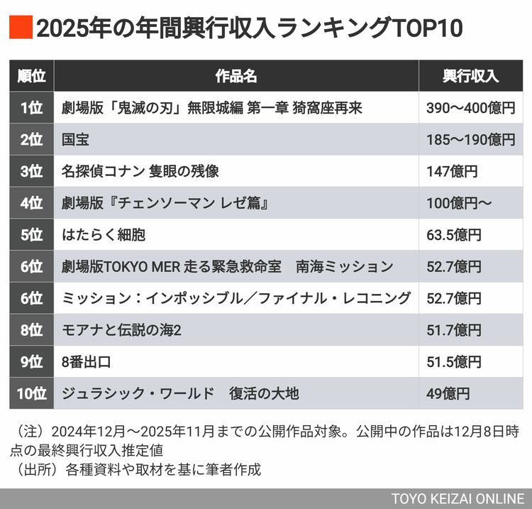 | … | 7826/04/11(土)16:11:00No.1419304922そうだねx1>2025年(2024年12月〜2025年11月)の洋画ランキングはこんな感じ |