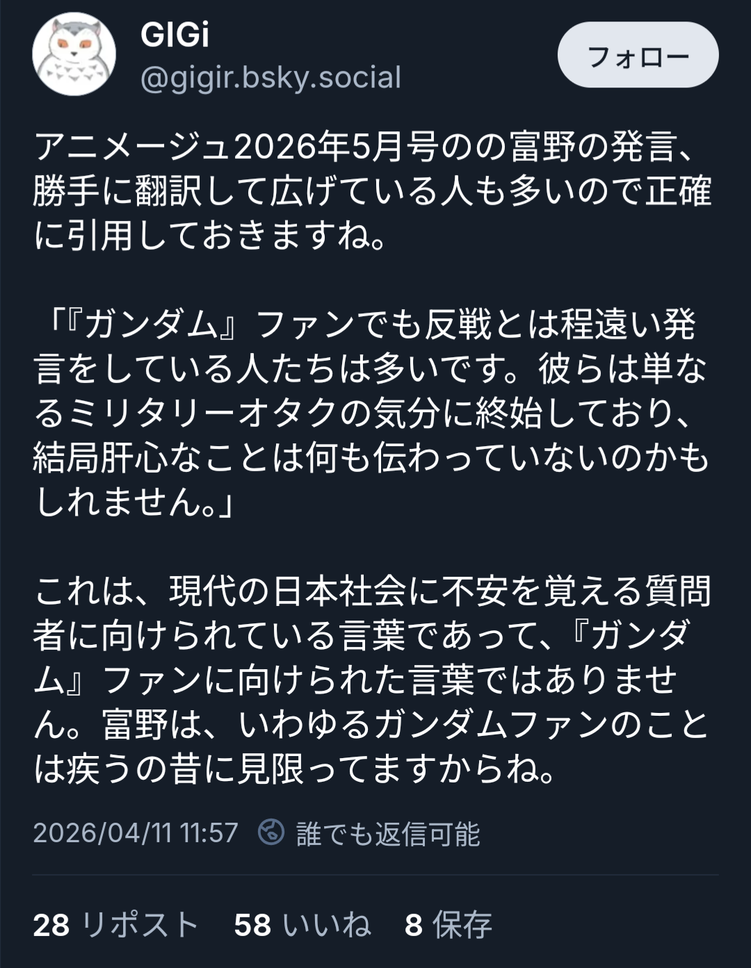>富野という叩き棒を得た向こうの人達のはしゃぎ方がすごい!