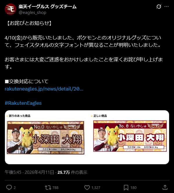| … | 9626/04/12(日)02:31:58No.1419510010+https://x.com/eagles_shop/status/2041350299483586990 |