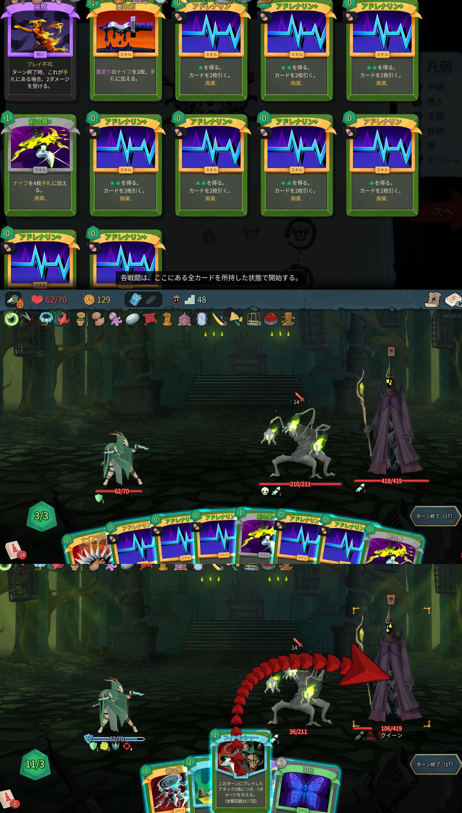 | … | 6926/04/12(日)16:23:11No.1419676563そうだねx1そもそも1も敵のインフレに防御カード追いついてなかったからなあ… |