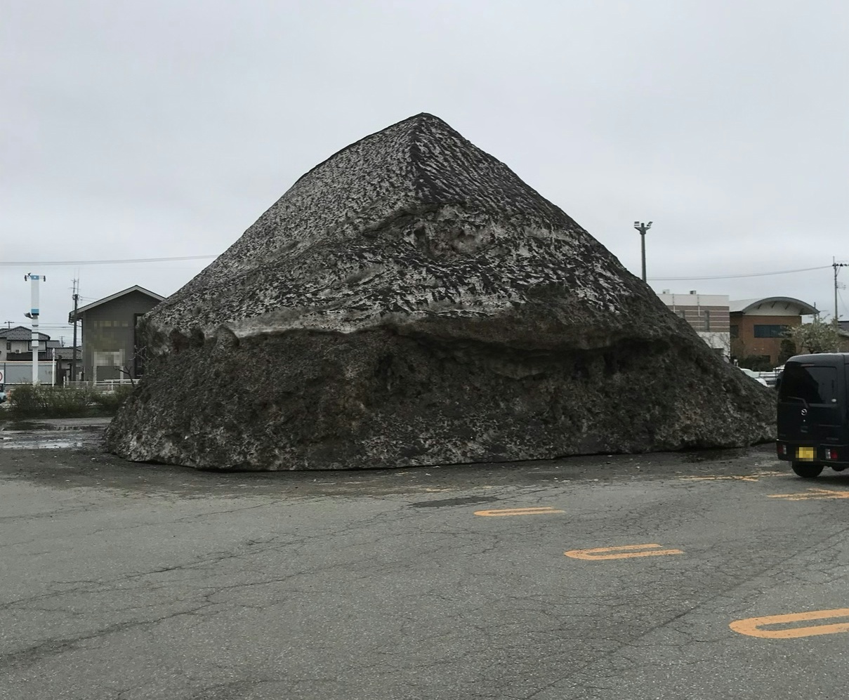 | … | 8726/04/12(日)16:57:52No.1419687621+雪山に滑り止めの砂や削れたアスファルトや風で飛んできた土がコーティングされたもの |