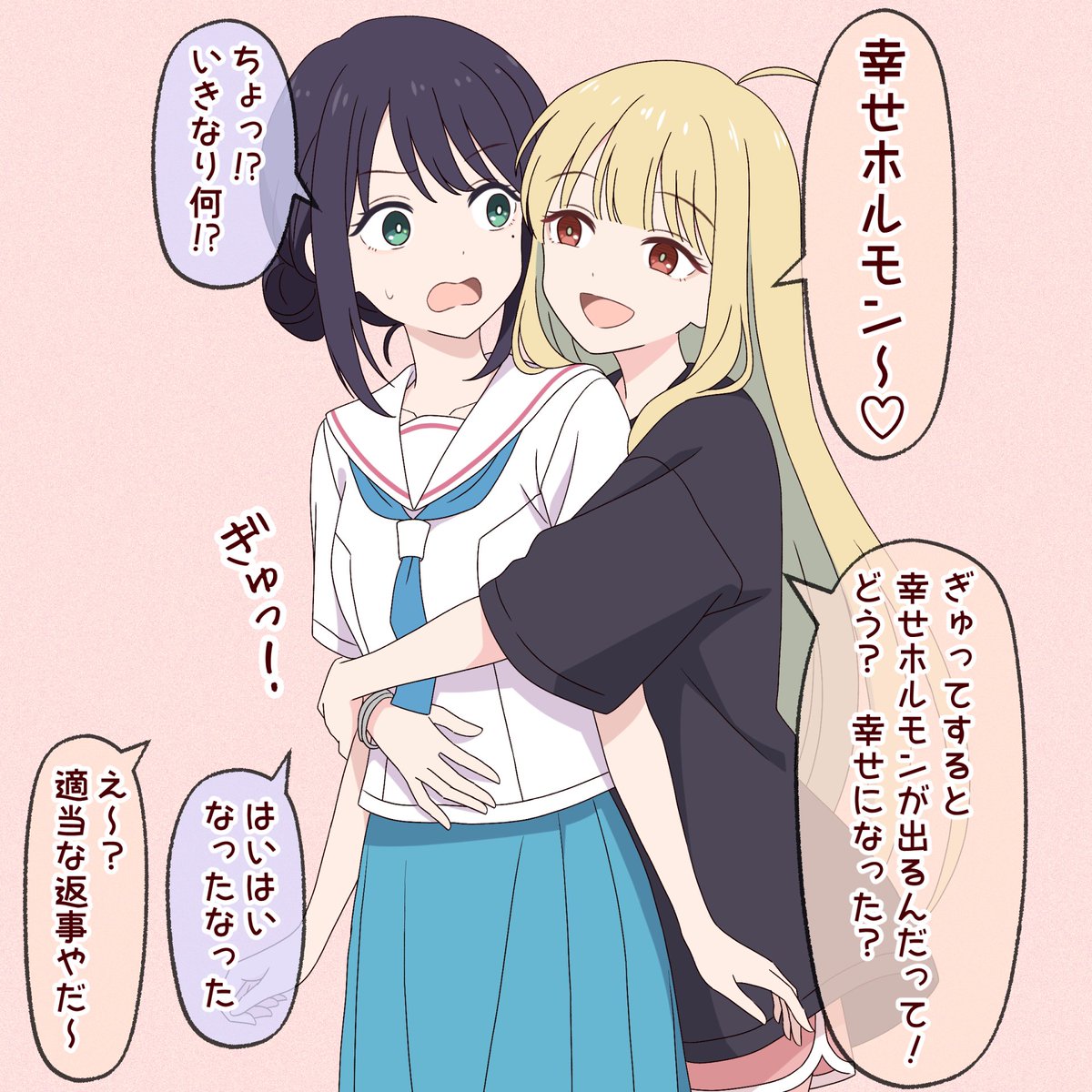 | … | 326/04/12(日)22:04:45No.1419816721+片方が驚いてる状態でのいわゆるサプライズなハグは幸せホルモン出ないんすよ… |