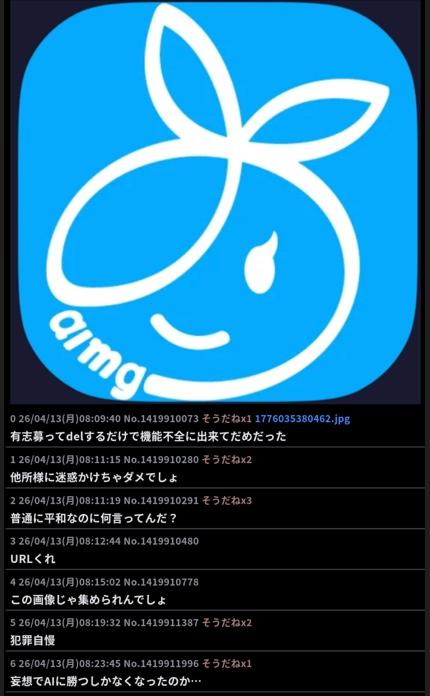 | … | 17026/04/13(月)09:56:45No.1419928227そうだねx5>あいもげでも反AI勢力が伸びてきたのか? |
