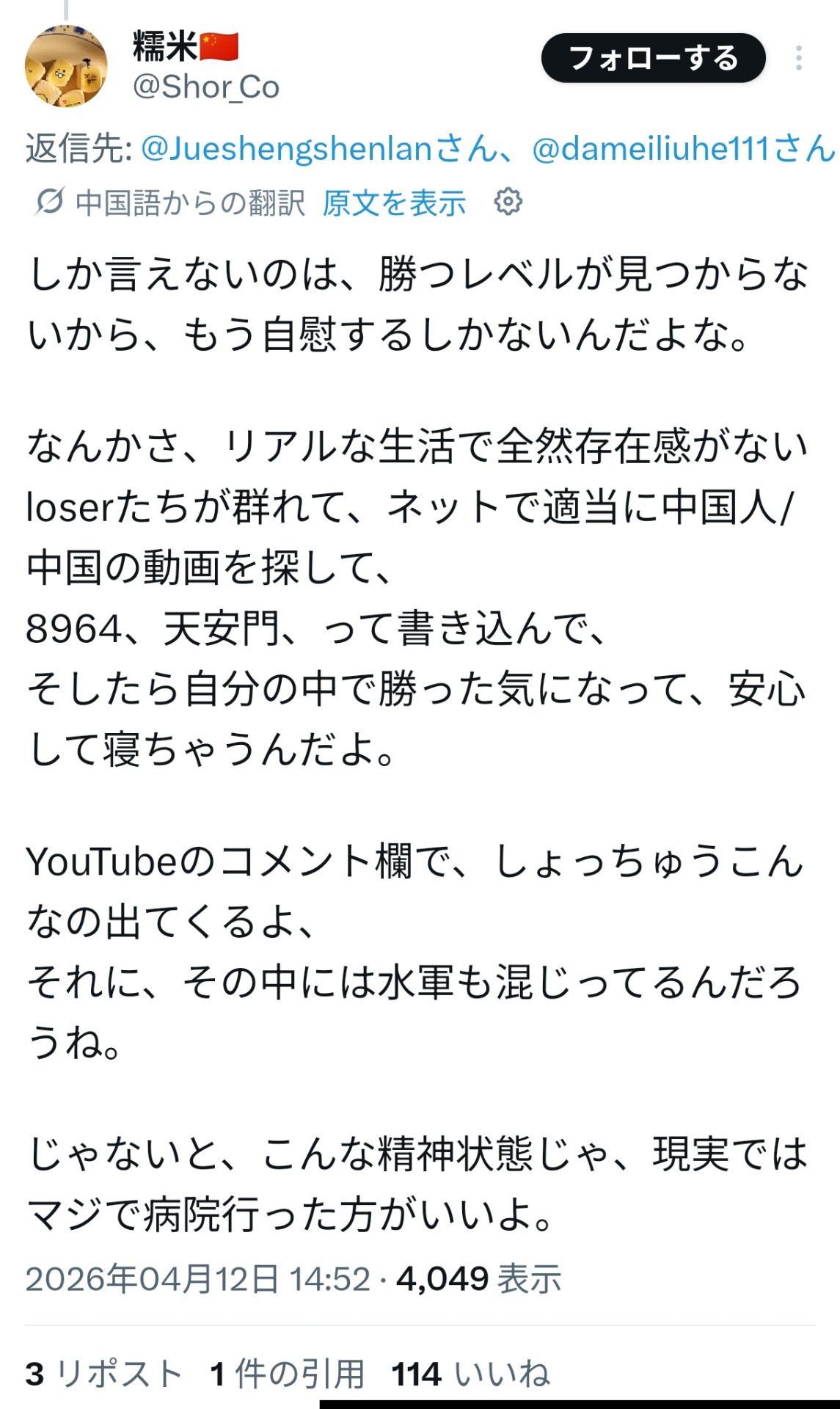 | … | 29726/04/13(月)13:09:59No.1419970426+「楽天AI」(日本政府の補助金入り)中身は中国DeepSeekと判明...ジャップ完全に終わる |