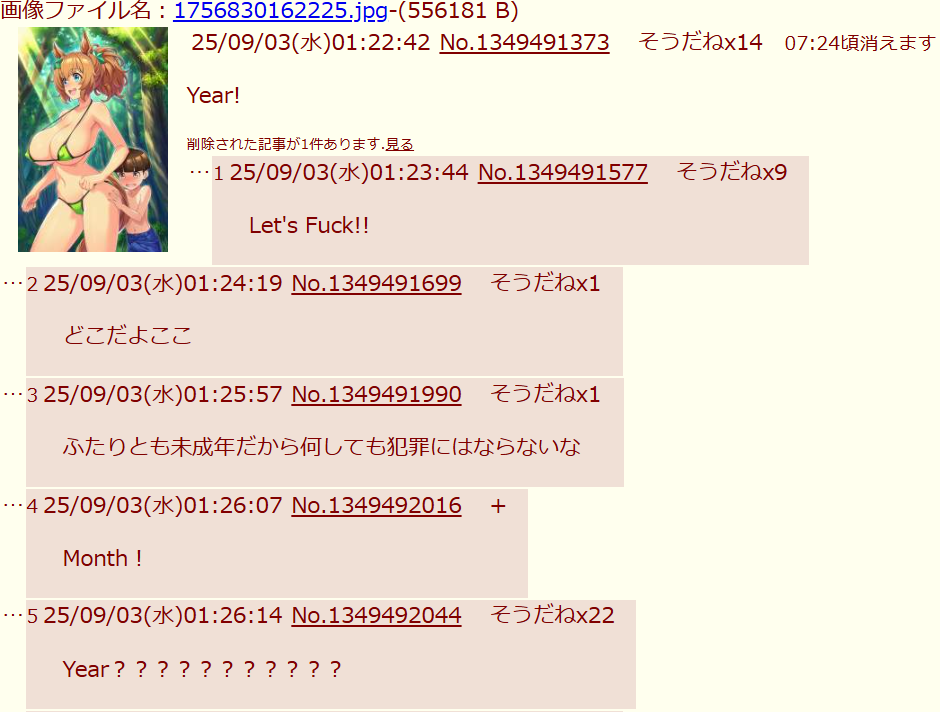 | … | 5926/04/13(月)18:55:25No.1420045770+>なんか荒らし方が下手くそすぎて逆にムカついてきた |