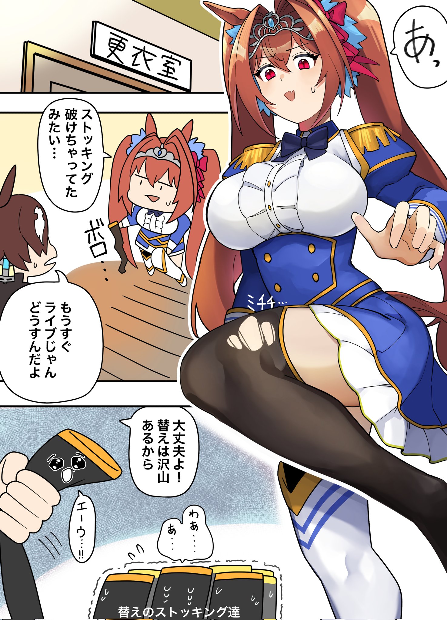 | … | 1126/04/13(月)21:45:35No.1420113116+>もちもちほっぺ大作戦みたいなストッキング履くな |