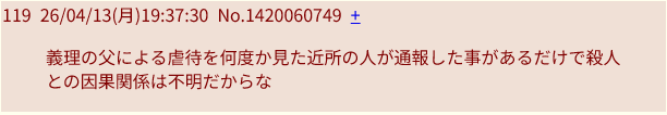 | … | 3526/04/14(火)10:58:33No.1420232990+>お前ら小学生死体遺棄事件が親が犯人っぽそうで悔しくないのかよ |